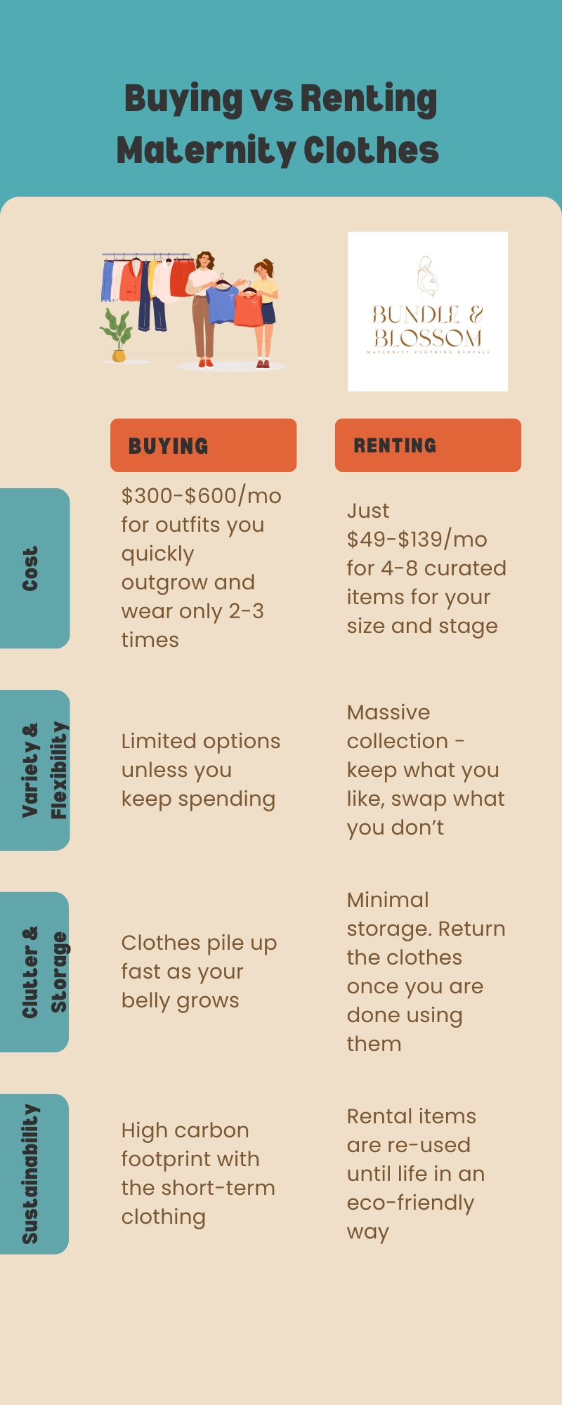 Pregnancy changes fast — and buying new clothes every stage becomes expensive, wasteful, and overwhelming. Renting gives you freedom, flexibility, and financial relief.